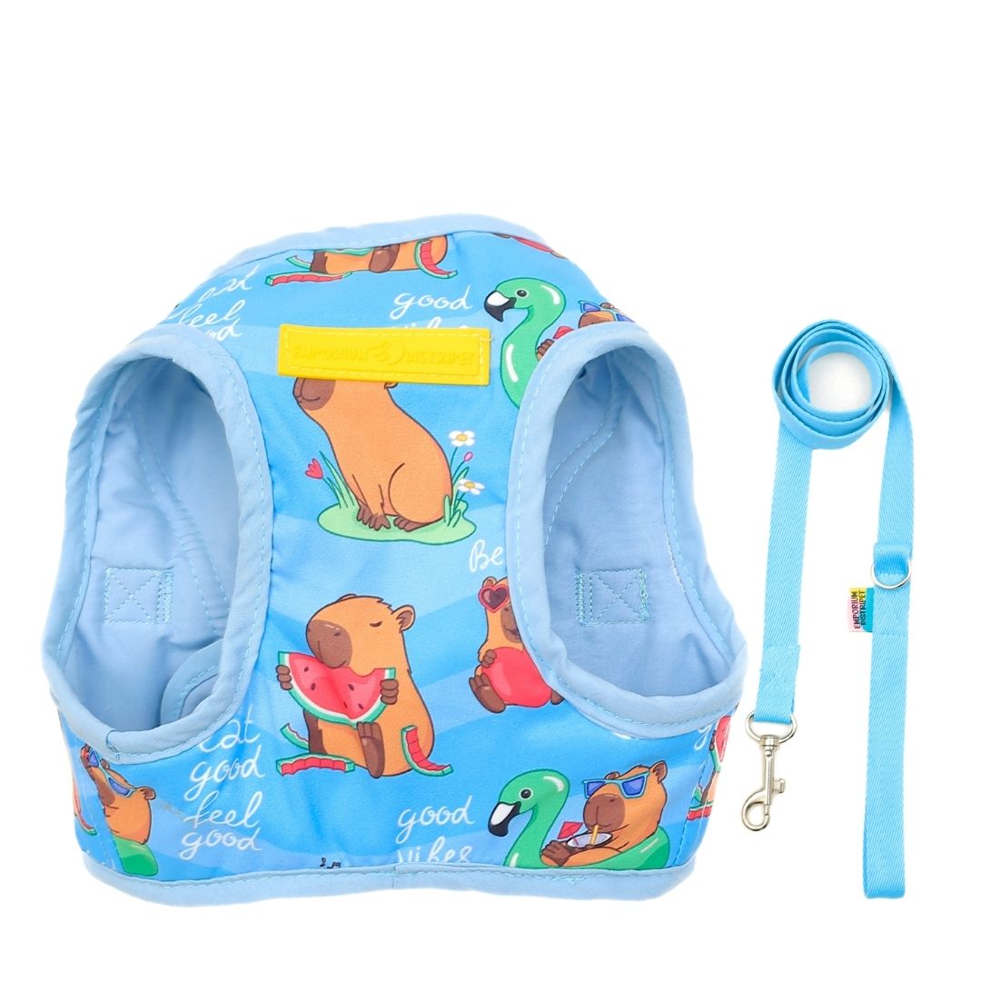 O peitoral Capivara Azul da Emporium Distripet é uma ótima opção pra você que procura peitorais lindos e de qualidade, conforto e segurança para o seu pet são garantidos. Ele possui uma estampa super divertida de Capivaras do verão.