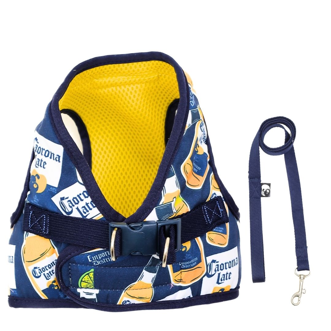 O peitoral Ressaca Azul da Emporium Distripet é uma ótima opção pra você que procura peitorais lindos e de qualidade, conforto e segurança para o seu pet são garantidos. Ele possui uma estampa super divertida de cervejas com o logo "Caorona Late".